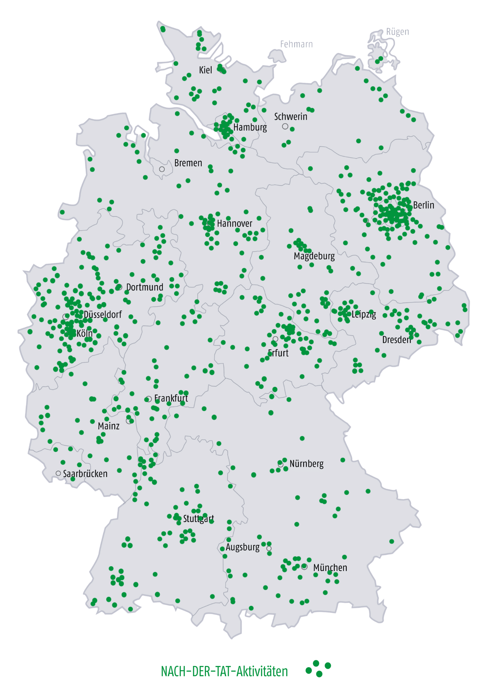 Mit unserem bundesweiten "Mitmachprojekt" Nach-der-Tat sollen die Teilnehmer - "unsere Praxisexperten" - durch unsere Unterstützung selbst befähigt werden, Verbesserungen in Gang zu setzen. Durch unsere kostenfreien Werkzeuge steht niemand mehr alleine da - wir schauen mit!